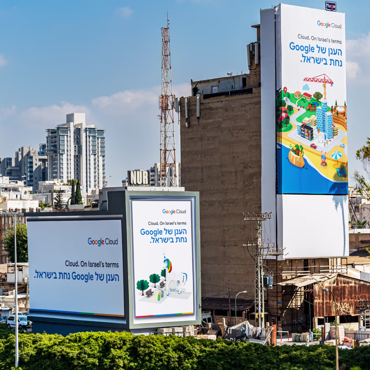 For Google Cloud's launch in Israel, we aimed to create a campaign that felt like a nod to Israeli culture, blending in well-loved local symbols with Google's vibrant brand style. We chose relatable, eye-catching imagery to spark interest and make Google Cloud feel welcoming to Israelis, capturing their attention with a mix of familiarity and innovation.